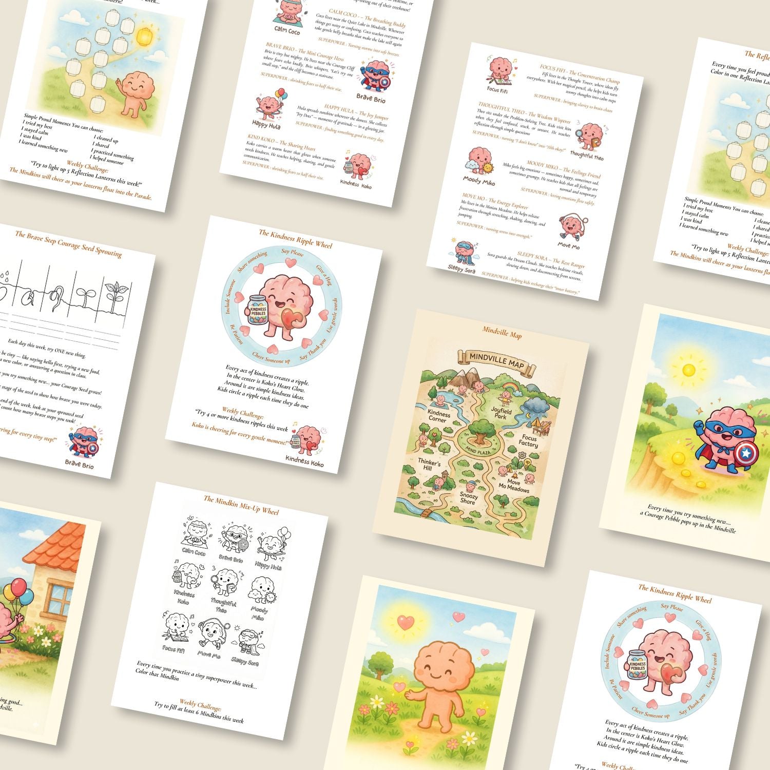 Each Mindkin represents an important life skill—calm, courage, focus, kindness, joy, movement, and rest—helping children relate to emotions in a friendly, non-overwhelming way. -